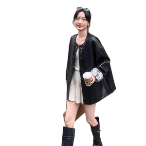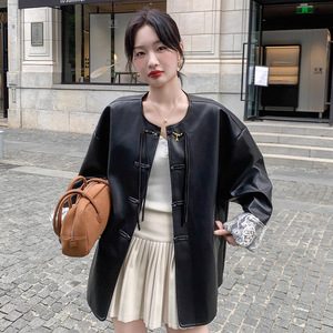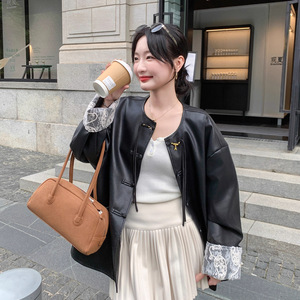新中式皮衣外套女装2025春秋季新款国风拼接外穿感气质复古皮夹克