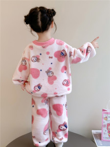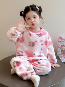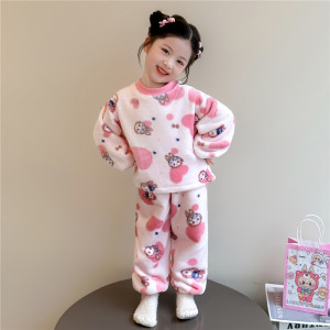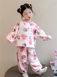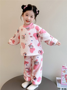 女童睡衣秋冬季珊瑚绒2025新款女孩拉布套装法兰绒儿童家居服冬装