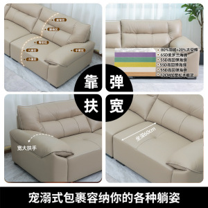 意式极简大黑熊真皮沙发简约现代小户型客厅直排头层牛皮高背沙发