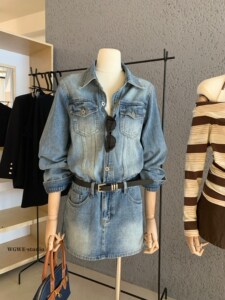 【WGWE】7150广州十三行女装2025秋装新款工装长袖牛仔衬衫连衣裙