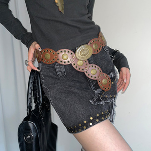 复古民族风棕色腰带女小众西部风宽版腰封配裙子牛仔裤皮带配饰潮