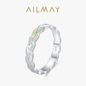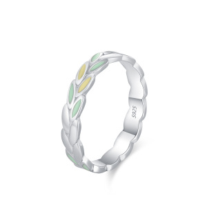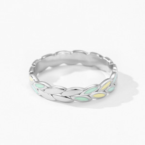 森系S925通体纯银新款黄绿色树叶珐琅戒指女小清新百搭设计食指戒