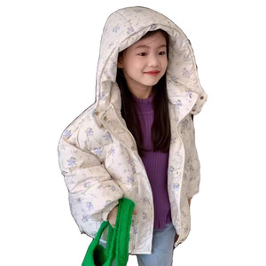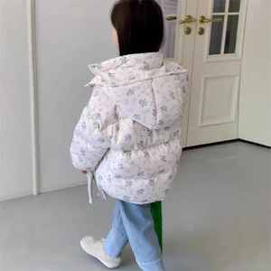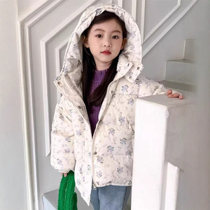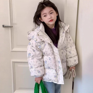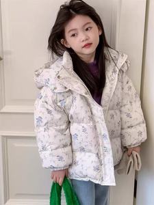 女童碎花羽绒棉服冬洋气连帽面包服棉衣女宝宝韩版公主风外套棉袄