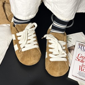 美拉德厚底德训鞋女2025秋季新款增高百搭透气真皮复古小众板鞋潮