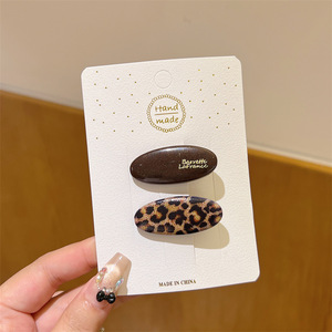 2025气质字母豹纹柳叶发夹女百搭刘海侧边夹前额碎发夹头饰女新款