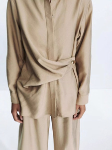 2025春秋爆款女装欧美ins风气质时尚 金色纽扣饰双襟衬衫7484053