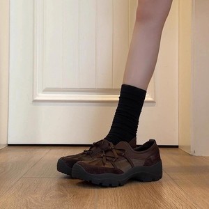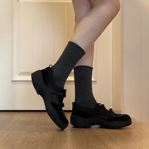 小众芭蕾风蝴蝶结运动乐福鞋女复古绒面一脚蹬厚底小皮鞋玛丽珍鞋