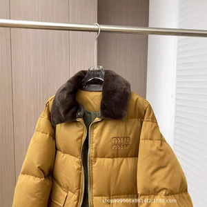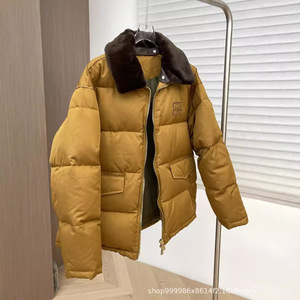 潮牌mm24秋冬新款时髦复古撞色双层毛领保暖面包羽绒服外套