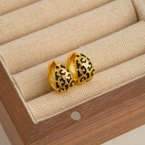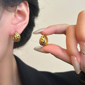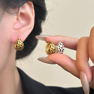 复古豹纹圆球耳扣耳环女小众设计高级感耳钉轻奢气质时尚百搭耳饰