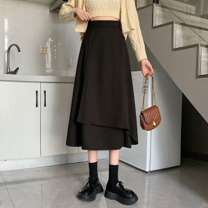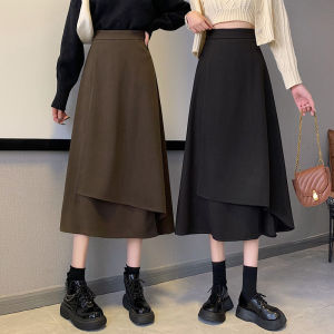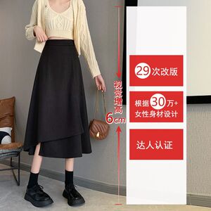 大码女装胖mm不规则半身裙秋冬中长款高腰垂感a字裙显瘦大摆伞裙