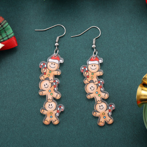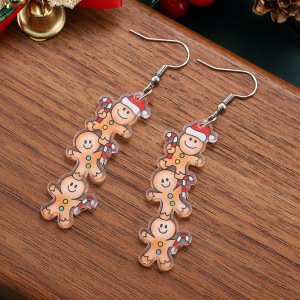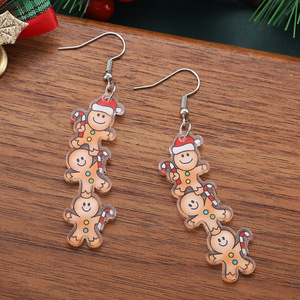 跨境新款圣诞节拐棍糖圣诞帽姜饼人吊坠耳环亚克力派对耳饰 礼物