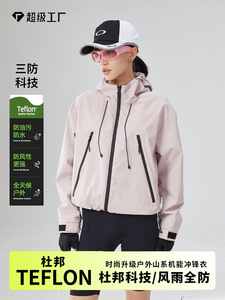 特氟龙三防短款冲锋衣女秋冬新款户外防风防水专业连帽登山服外套