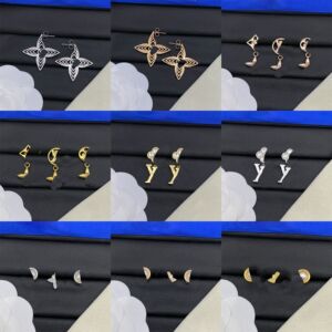 跨境欧美驴家新款高版本对版带标字母耳钉女银针四叶草耳环批发