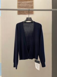 FONE简禾极简风一粒扣针织开衫女2025秋季深V领叠穿毛衣外套9037