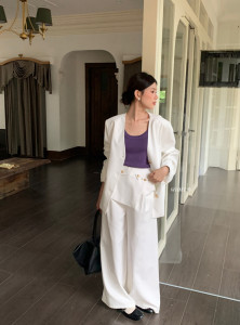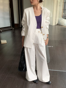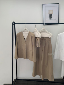 卡其色感西装套装女2025春秋新款韩系轻熟风休闲阔腿裤两件套配腰