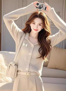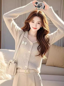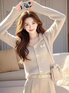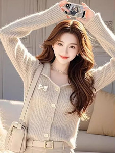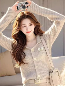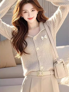 2025秋冬季穿搭气质小香风翻领针织上衣韩系新品感时尚毛衣外套女