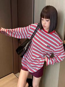 缪家miu系24SS新款百搭休闲宽松撞色条纹长袖T恤男女情 侣款上衣