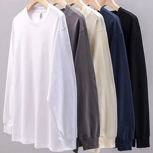 厂家直销秋冬500G长袖重磅新疆棉纯白色二本针圆领套头卫衣打底男