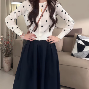 【轻奢波点】早秋新款气质提花长袖针织开衫上衣+半身裙其他