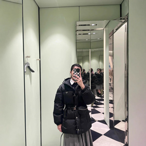 潮牌25ss秋冬新款收腰棉服配送三角标logo腰包腰连帽设计面包服