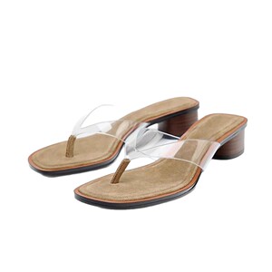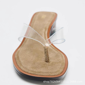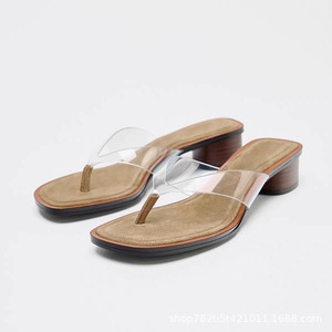 ZA2025夏季新品杏色透明PVC一字带粗高跟方头露趾凉鞋女时尚百搭