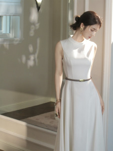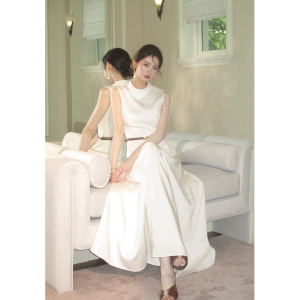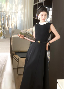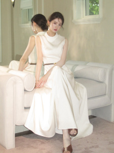 从一时刻【奥黛丽小姐】赫本风立裁缎面连衣裙a字大摆裙两色