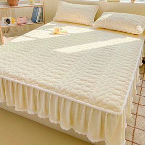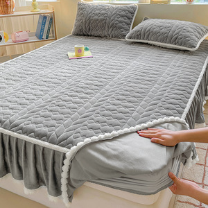 花边款加厚牛奶绒夹棉床笠单件保暖珊瑚绒床罩加绒床裙床垫保护罩