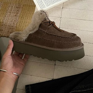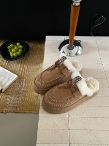 桑坡皮毛一体阿尔派新款女民族系带拖鞋懒人流苏脚蹬厚底拖