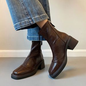 牛皮版~粗跟法式小短靴女2025新款秋冬加绒高跟弹力瘦瘦切尔西靴
