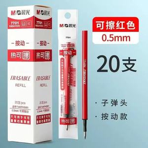 晨光可擦红笔芯按动热可擦替芯学生专用0.5子弹头晶蓝魔力擦笔芯