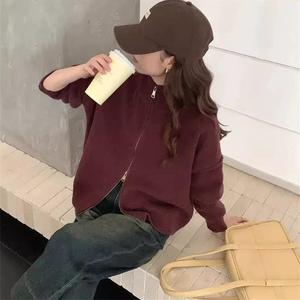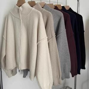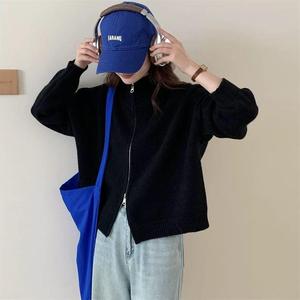 日韩系复古双拉链毛衣外套女秋季氛围感翻领休闲百搭针织开衫上衣