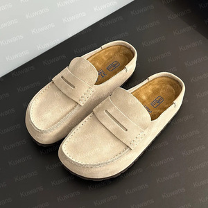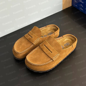 复古真皮一脚蹬勃肯鞋半拖鞋外穿2025秋季新款通勤百搭包头拖鞋男