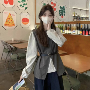 设计感不规则开叉叠穿坎肩马甲长袖衬衫2025女秋季新款时尚套装潮