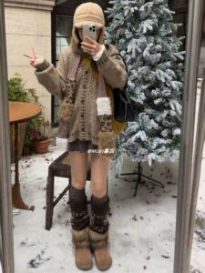 暮四~2025秋冬千禧风毛毛雪地靴加绒内增高保暖棉鞋短靴冬季款