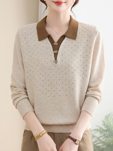妈妈秋装针织小衫洋气毛衣上衣服中老年女春秋冬季长袖打底衫