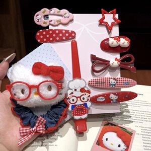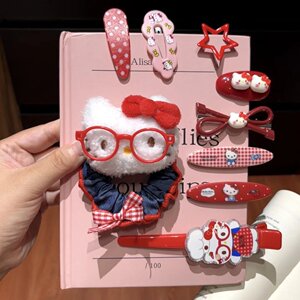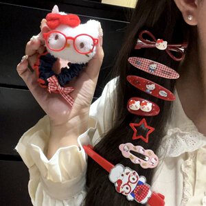 可爱古早眼镜Kitty猫牛仔发夹发圈简约扎马尾高弹力发绳发卡套装