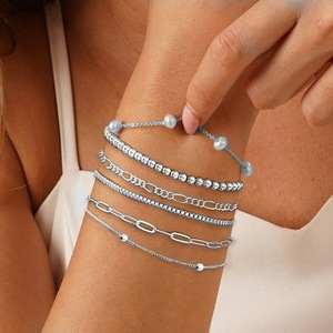 欧美跨境ins风波西米亚极简手饰链条女式套装6条多层链条简约手链