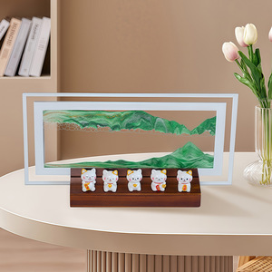 3D流沙画家居饰品乔迁装饰发财招财猫流水生财桌面摆件八方来财