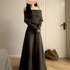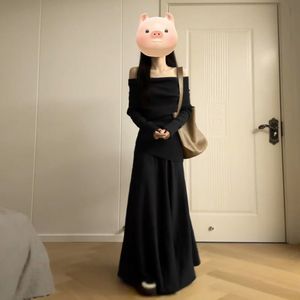 2025新款气质一字肩连衣裙子女早秋季韩系慵懒风穿搭一整套装长裙