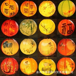 中秋节灯笼传统古风折叠圆形喜国庆纸灯笼挂饰装饰氛围庆场景布置