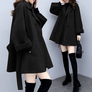韩版春秋季胖加大码风衣外套女宽松中长款夹克毛呢开衫300斤潮