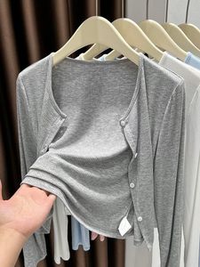 灰色针织开衫薄款外套防晒罩衫披肩女外搭2025新款办公室空调衫夏