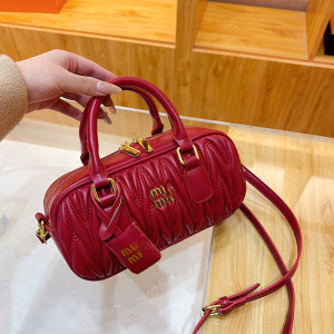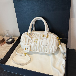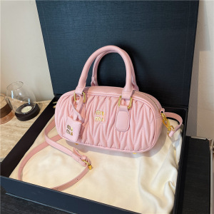 跨境bags2025新款MIU皱褶手提单肩包保龄球女包时尚斜挎枕头包包
