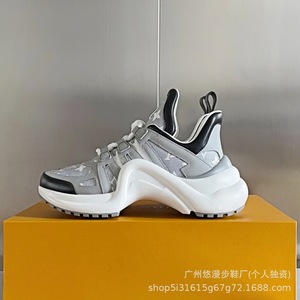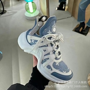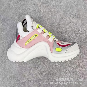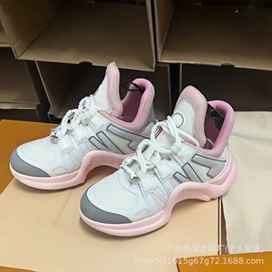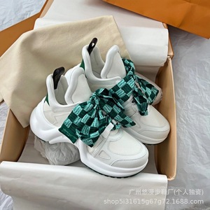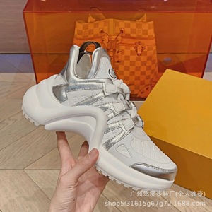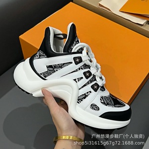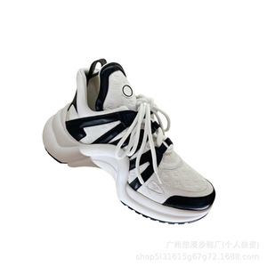高版本弓形老爹鞋女明星同款真皮休闲厚底增高透气休闲百搭运动鞋