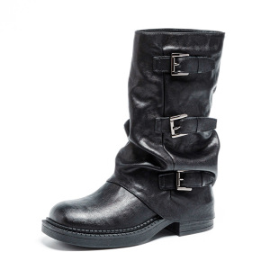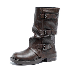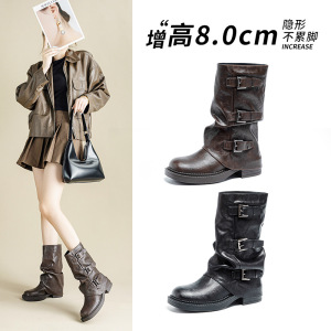 英伦风内增高堆堆靴女2025年款8cm跟高小个子显瘦复古中筒骑士靴