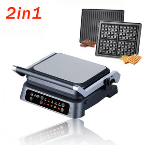 二合一磁吸换盘煎牛排机触屏款华夫机帕尼尼三明治机煎烤机烤肉机