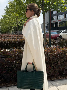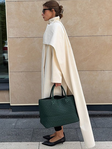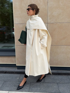 气质通勤风时尚纯色大围巾领风衣中长款外套20252跨境欧美风新款
