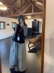 时尚套装女灰色长袖针织衫叠穿挂脖背心两件套秋季新款小个子穿搭