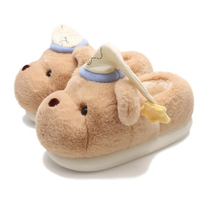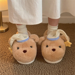 保暖学生冬季新款时尚舒适毛绒绒月子鞋女可爱睡帽小熊居家棉拖鞋