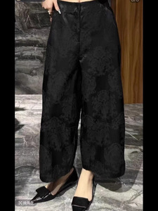 新中式浮雕提花休闲九分裤女秋季新款高腰宽松显瘦哈伦阔腿裤拼接